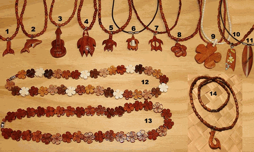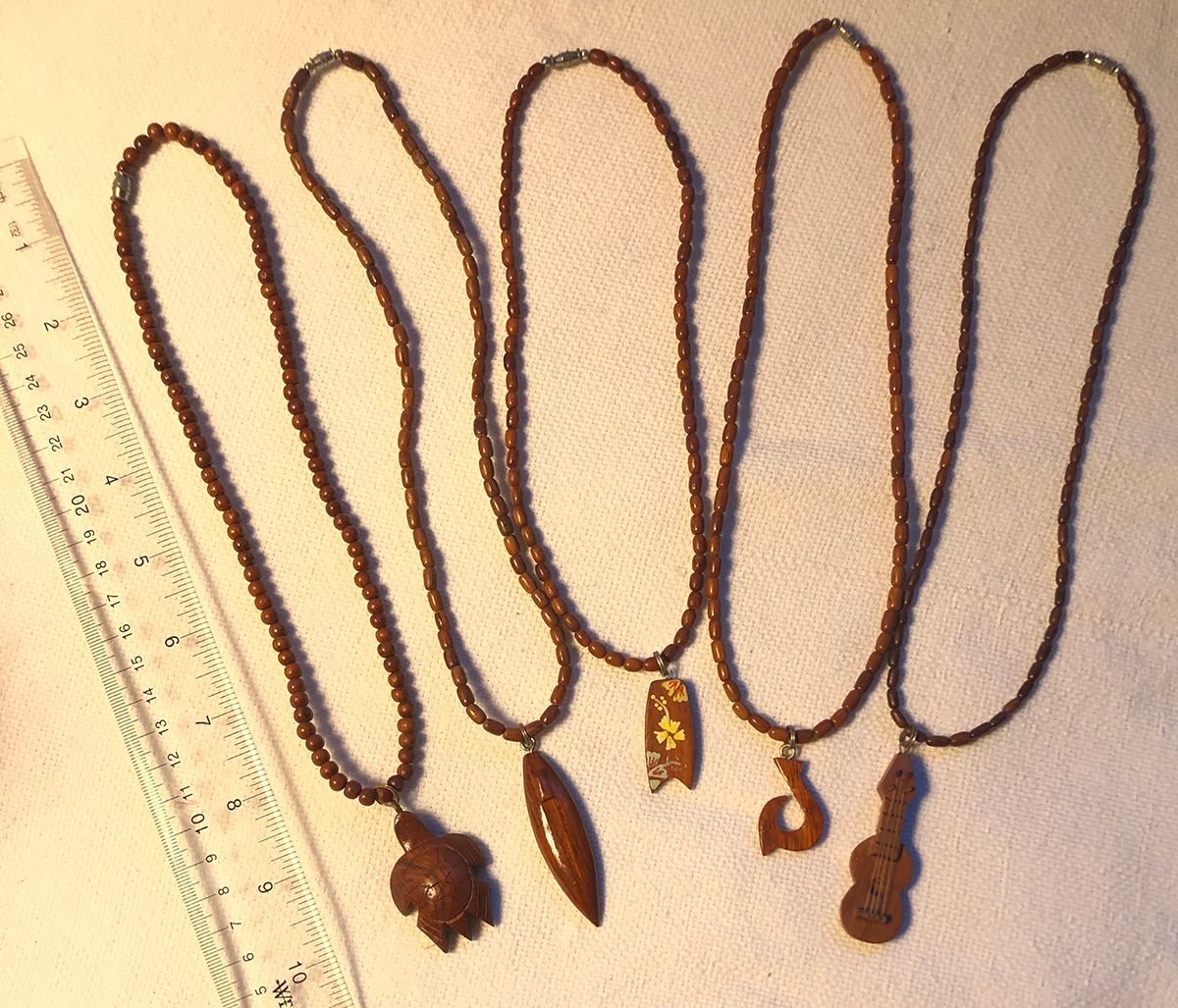 Rice size beads wooden 16" necklaces and pendants are made of acacia wood (Koa wood family).